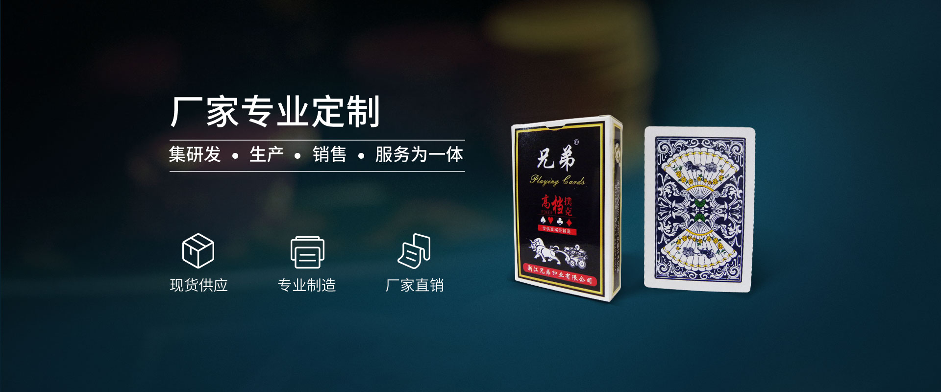 浙江兄弟印業(yè)有限公司是一家生產(chǎn)中、高檔娛樂撲克、禮品撲克、廣告撲克的專業(yè)撲克牌制造企業(yè)。它位于風(fēng)景秀麗的“溫泉之鄉(xiāng)”武義縣工業(yè)區(qū)發(fā)區(qū),金麗溫高速公路武義段出入口處。